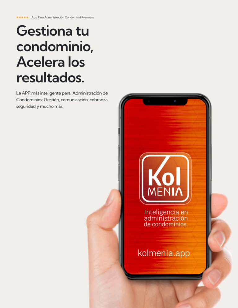 Kolmenia es una APP inteligente de administración para condominios que facilita la gestión de los equipos administrativos e incrementa la seguridad y comodidad de los habitantes.